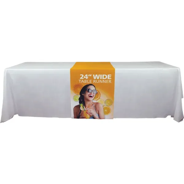 Made in the USA and available in multiple widths—24″, 30″, 36″, and 60″—our table runners come in both full and economy styles to fit your presentation and your budget. They’re printed in stunning full color using high-resolution dye-sublimation, delivering vivid images and crisp text on durable polyester fabric. Whether you want a logo, slogan, or full graphic spread, your branding will be front and center.