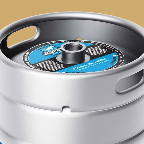 Whether your kegs are stacked in a distributor’s warehouse or tapped at a festival, these two label styles work together to ensure your brand shines through.