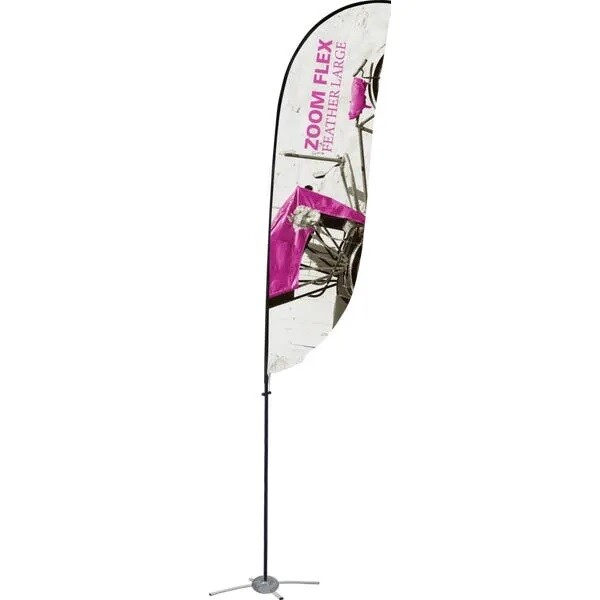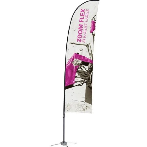 Introducing the dynamic Zoom Flex Flag, your ultimate advertising display solution. Not only does this flag boast a durable fiber pole and a wind-resistant design, but it’s also perfect for both outdoor and indoor displays. Furthermore, Zoom Flex offers both single and double-sided display options. Moreover, you can choose from three distinct shapes: Feather, Straight, and Teardrop. Depending on the shape, the heights can vary, reaching up to an impressive 178.38″ (14.8ft). Additionally, every purchase includes a ground stake and storage sleeve.